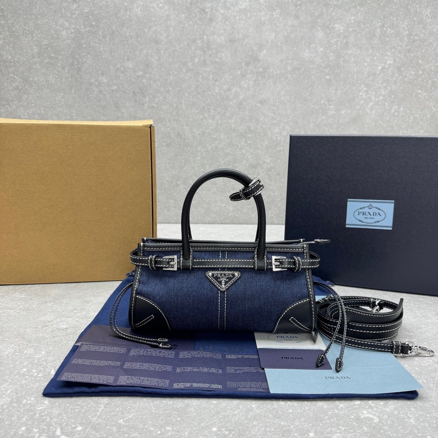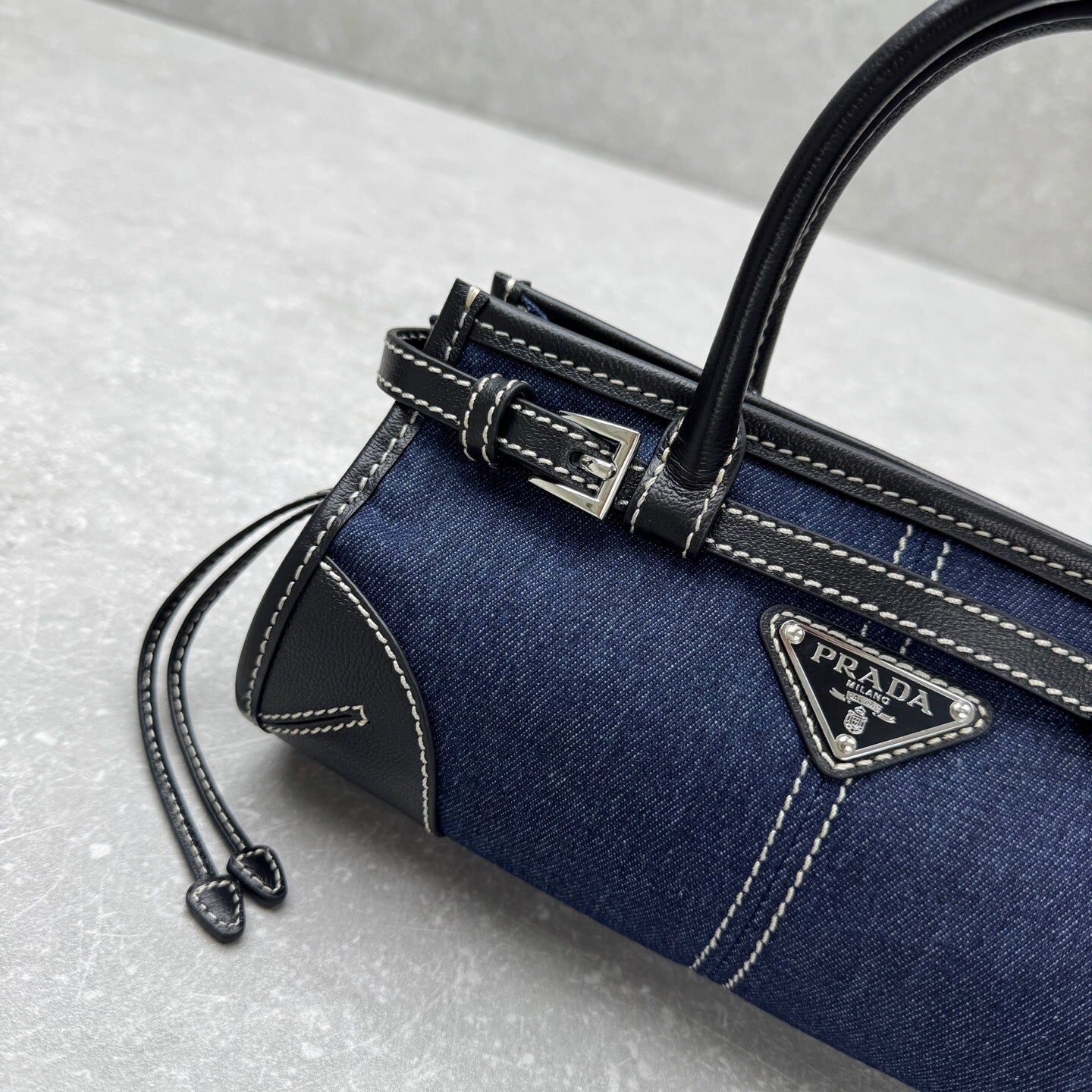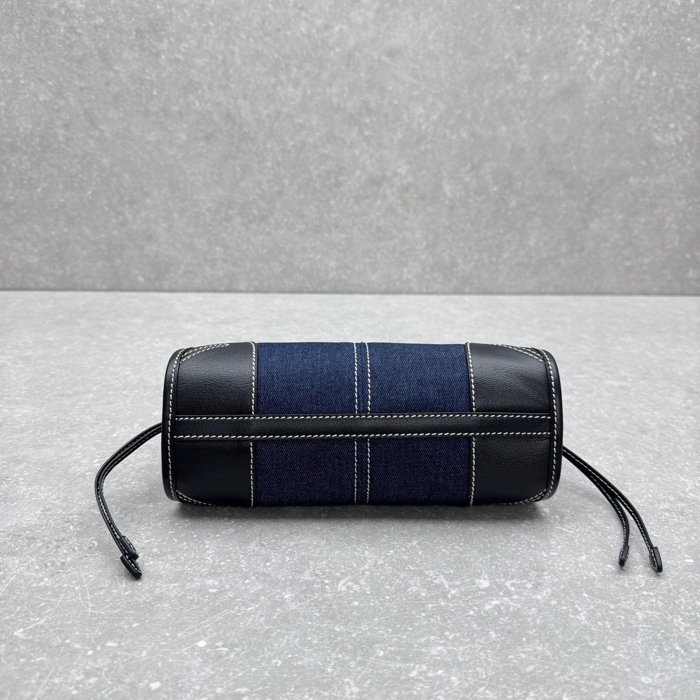 • Denim Bleu Foncé et Cuir Noir : Confectionné dans un denim bleu profond de haute qualité, magnifiquement encadré par des empiècements en cuir noir souple. Cette combinaison crée un contraste visuel captivant et une texture riche.