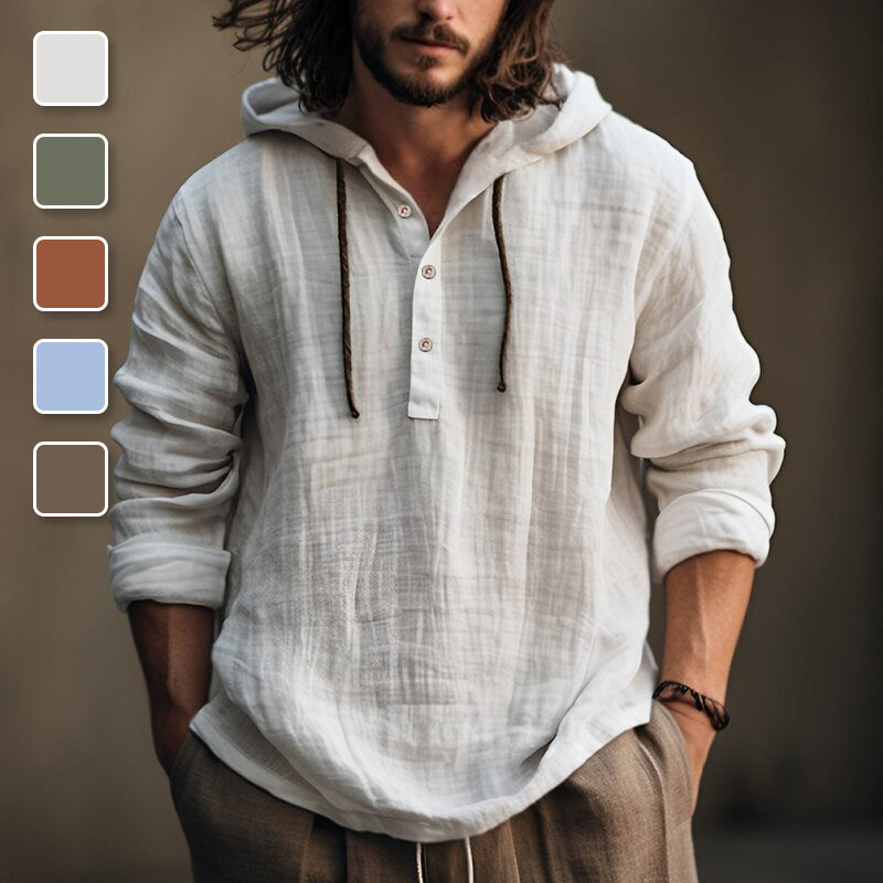 Sweat à Capuche Décontracté Respirant de Couleur Unie à Boutons Devant