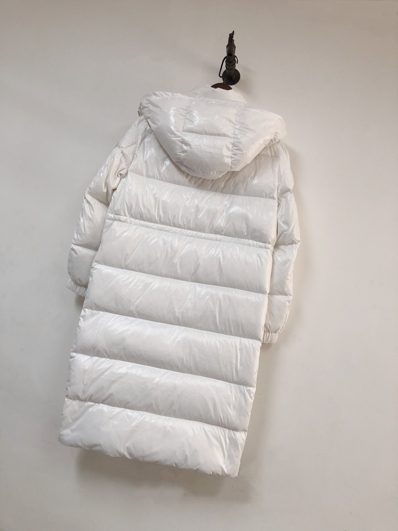 • Design Majestueux et Protecteur : Sa coupe extra-longue offre une couverture maximale, tandis que le tissu blanc éclatant à finition brillante apporte une touche de glamour moderne et luxueux. La capuche généreuse et les grands matelassages promettent une chaleur cocooning.