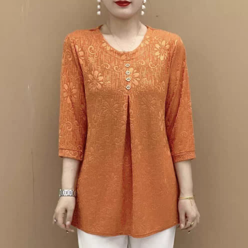 1 * Chemise Ă col rond florale Ă manches 3/4 pour femmes, tendance et ample